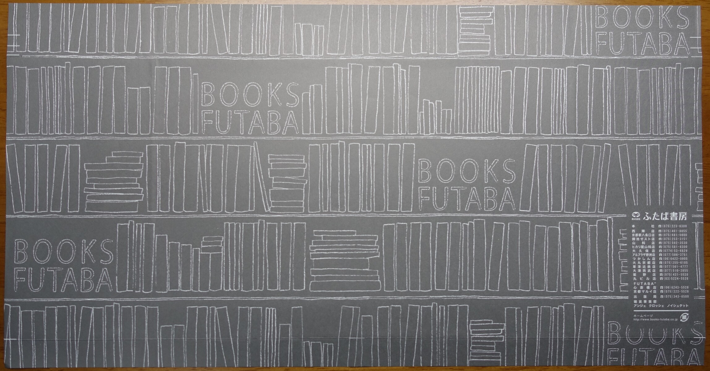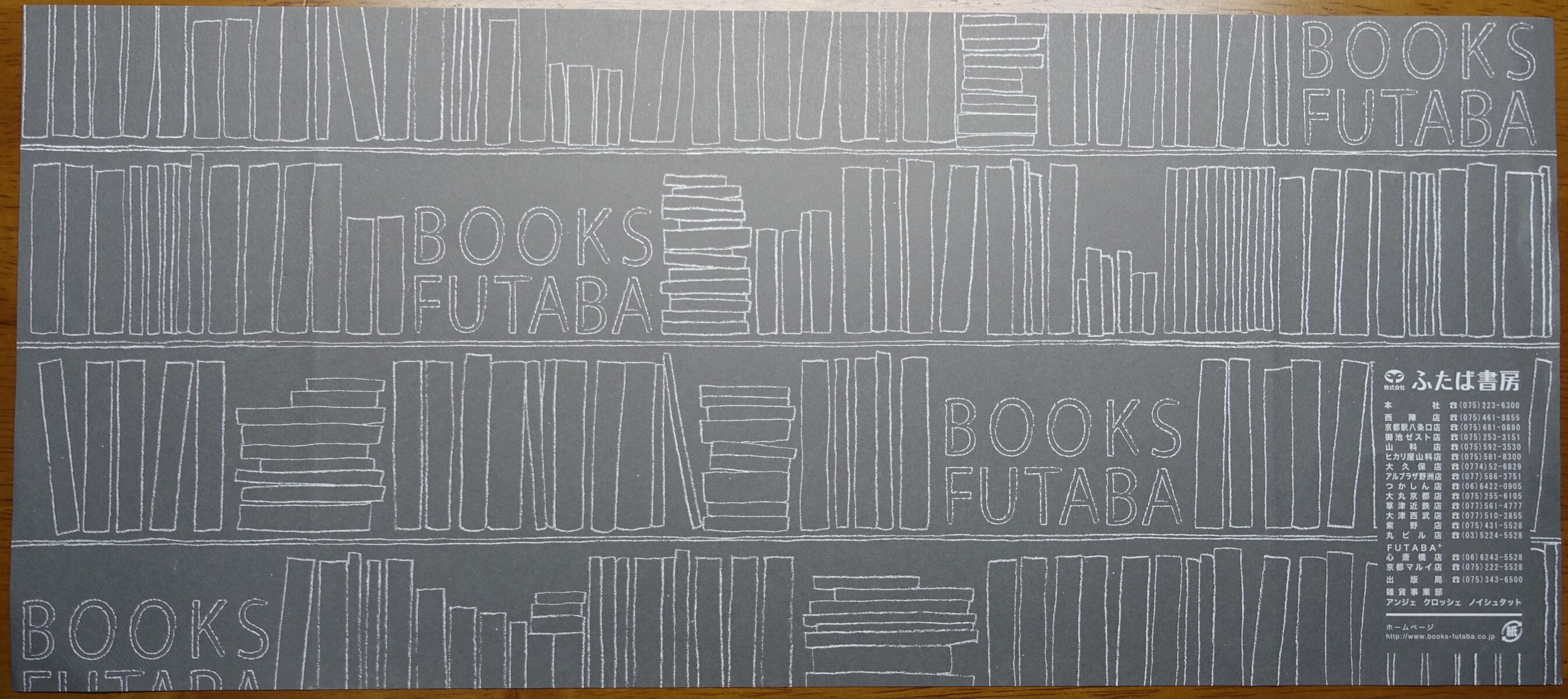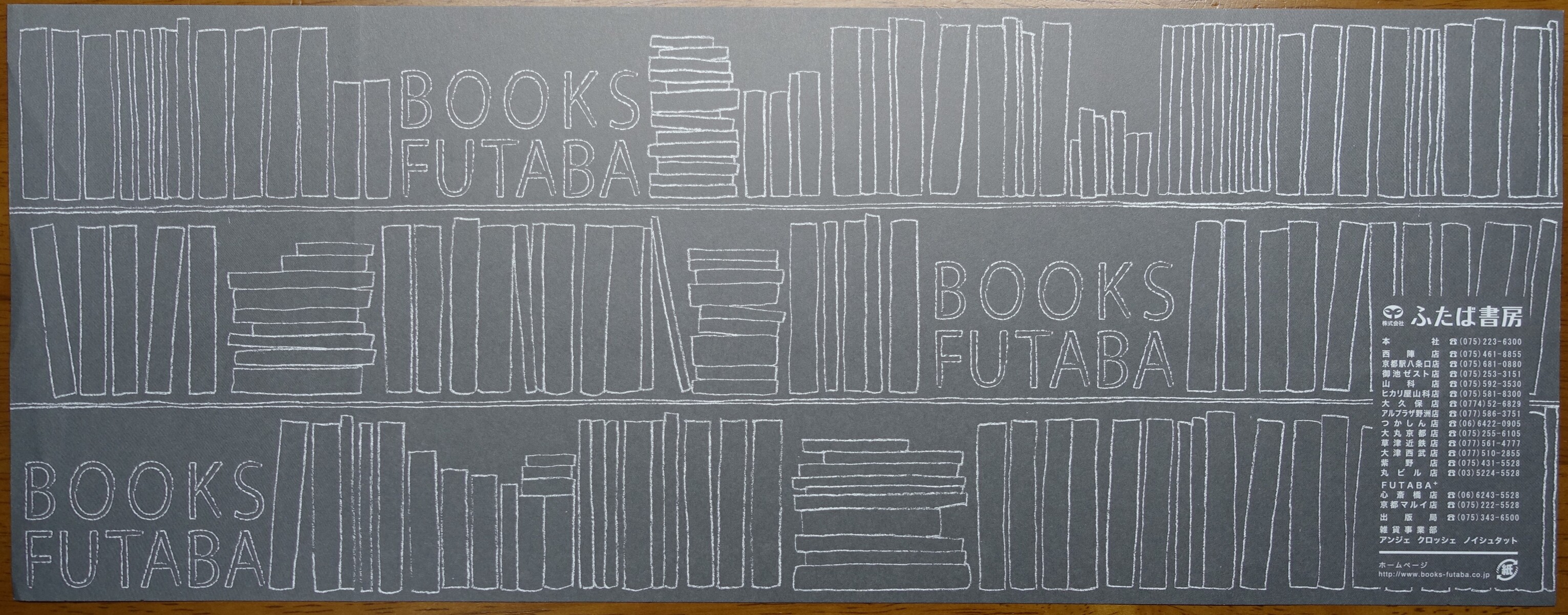 2019年09月04日 ふたば書房 カテゴリ:「ふ」で始まる書店京都府の書店 コメント数:0 コメント by bookcoverfan ふたば書房。 文庫サイズ。 2015年入手。 京都府を中心に展開している書店です。新書サイズ。2015年入手。B6判サイズ。2015年入手。A5判サイズ。京都駅八条口店 〒600-8215 京都府京都市下京区東塩小路釜殿町31-1(JR京都駅八条口 近鉄名店街みやこみち) ホームページ http://www.books-futaba.co.jp/ タグ :#ブックカバー#書皮#京都府の書店#は行の書店